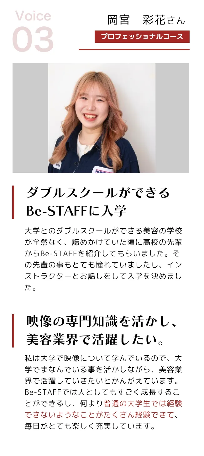 無料メイク体験を希望する方任意希望する資料請求希望校をお選びください必須東京校福岡本校北九州校熊本校久留米校氏名(漢字)必須 氏名(カタカナ)必須 生年月日(西暦)必須 —以下から選択してください—19171918191919201921192219231924192519261927192819291930193119321933193419351936193719381939194019411942194319441945194619471948194919501951195219531954195519561957195819591960196119621963196419651966196719681969197019711972197319741975197619771978197919801981198219831984198519861987198819891990199119921993199419951996199719981999200020012002200320042005200620072008200920102011201220132014201520162017 年 —以下から選択してください—123456789101112 月 —以下から選択してください—12345678910111213141516171819202122232425262728293031 日 メールアドレス必須 電話番号(ハイフンなし)必須 住所必須現在の状況必須—以下から選択してください—社会人美容師大学生専門学生短大生高校3年生高校2年生高校1年生中学生興味のあるコース※複数選択可必須 トータルビューティーコースメイクアップコースヘアコースネイルコースカスタマイズコース未定ご意見・ご質問があればお書きください任意 よろしければHPを知ったきっかけを教えてください※複数選択可任意インターネット検索で広告を見てインスタ広告を見て知人・友人にすすめられてリクエストQJコレカラ進路マイナビ進路美容師にすすめられてその他